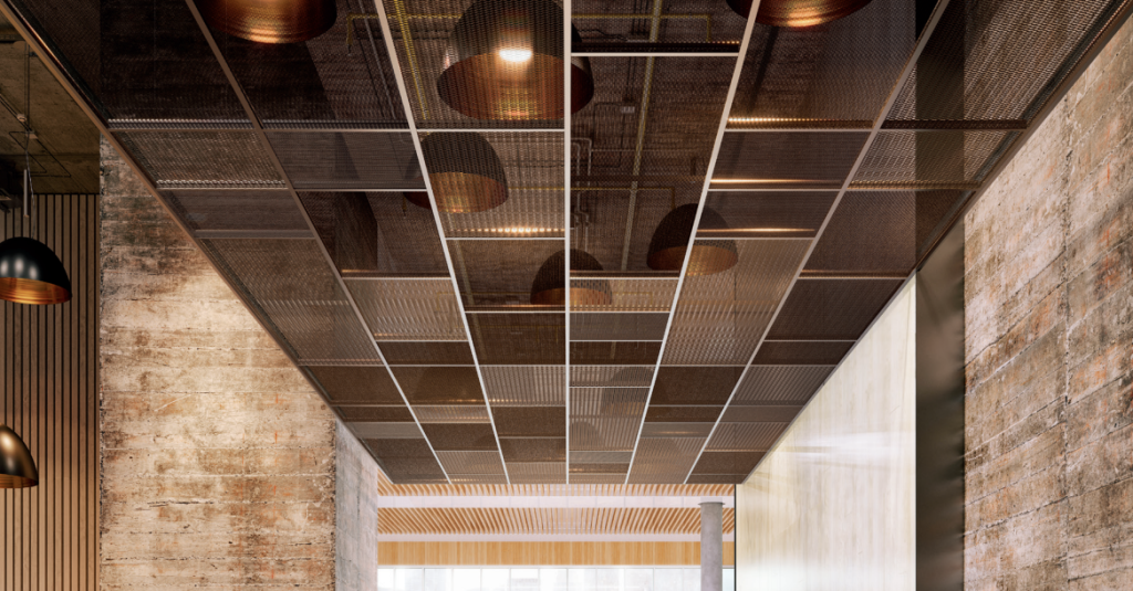 De Knauf Armstrong Mesh Metal is een geperforeerde plafondplaat van metaal. Deze plafondplaat is in allerlei verschillende patronen te verkrijgen. Dit systeemplafond geeft een industriële uitstraling.