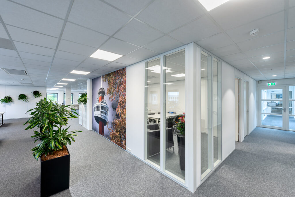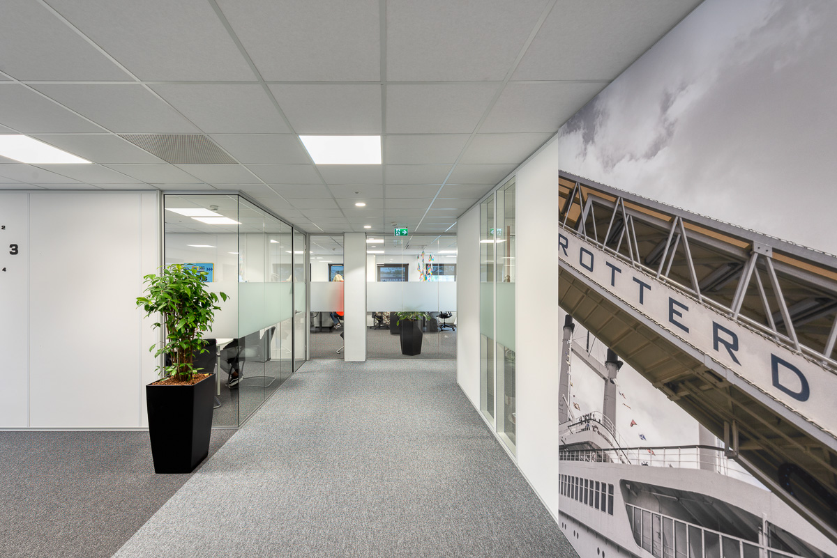 2020 was een hectisch jaar voor de RMC Rotterdamse Mobiliteit Centrale. Het bedrijf dat gespecialiseerd is in doelgroepen- (WMO) en groepsvervoer, moest op korte termijn op zoek naar andere huisvesting. Er werd vrij snel een geschikt huurpand op industrieterrein Spaanse Polder gevonden, alleen moest dat eerst volledig worden gestript en opnieuw ingedeeld voor RMC het in gebruik kon nemen. Gelukkig verliep die verbouwing vlot, na drie maanden konden de eerste medewerkers op hun nieuwe werkplek aan de slag. Marvo had er in opdracht van de eigenaar van het pand onder meer de systeemplafonds en de systeemwanden gemonteerd. De opdrachtgever had in eerste instantie een heel transparant kantoor voor ogen, met allemaal glazen wanden. Dat werd echter te prijzig voor huurder RMC, die ook deel van de kosten voor zijn rekening moest nemen. “Daarom hebben we gekozen voor een compromis” zegt Anita Neef, facilitair beheerder bij RMC. “Een paar ruimtes kregen glazen wanden en deuren, maar met name de spreek- en vergaderruimtes zijn gemaakt met gesloten wanden en deuren.” Het idee was om later nog eens te kijken of het transparanter kon. Dat werd in 2023, en ook daarvoor werd Marvo ingeschakeld.