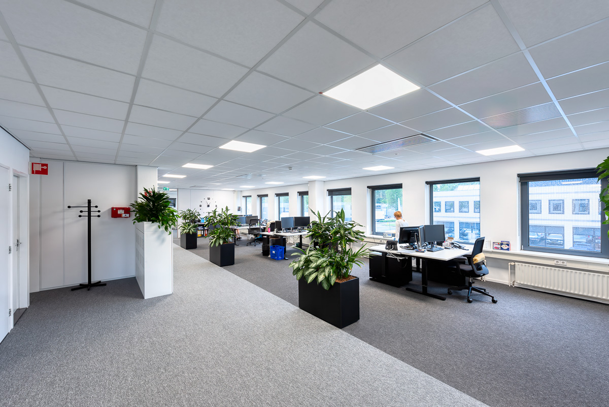 De aanpassingen zijn relatief bescheiden, maar effectief. Bij een spreekkamer zijn op een hoek vier gesloten panelen vervangen door transparante panelen. Een vergelijkbare verandering gebeurde bij een vergaderkamer op een andere hoek. Verschil is dat op deze glazen panelen op een strategische hoogte een strook folie is geplakt; dat geeft de gebruikers van de kamer de nodige privacy. Bij het opleidingslokaal voor call center-medewerkers is niet gekozen voor glazen panelen van plafond tot vloer, maar voor een gesloten borstwering met glas daarboven.