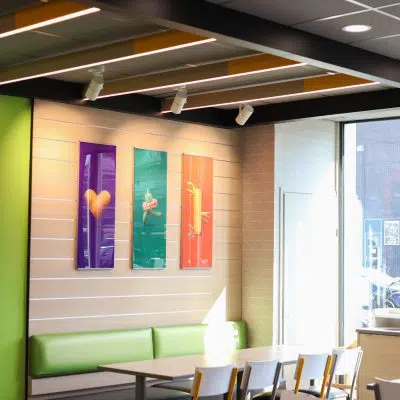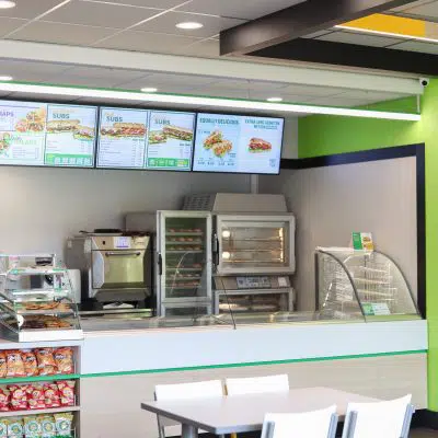 Voor de Subway in Hoogeveen hebben wij geholpen het nieuwe concept ‘Fresh Forward’ door te voeren. Wij hebben een frisse uitstraling mogen geven aan de inrichting van dit filiaal. Marvo Systeemplafonds heeft hier een grijs systeemplafond gemonteerd.